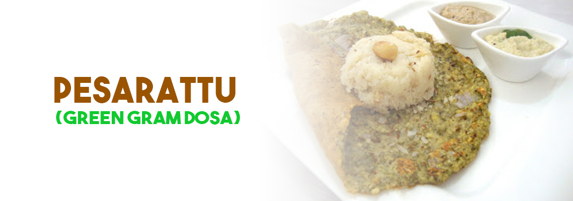 Pesarattu is a dosa like preparation native to Andhra Pradesh. It is made with green gram eaten as a snack or a breakfast meal.